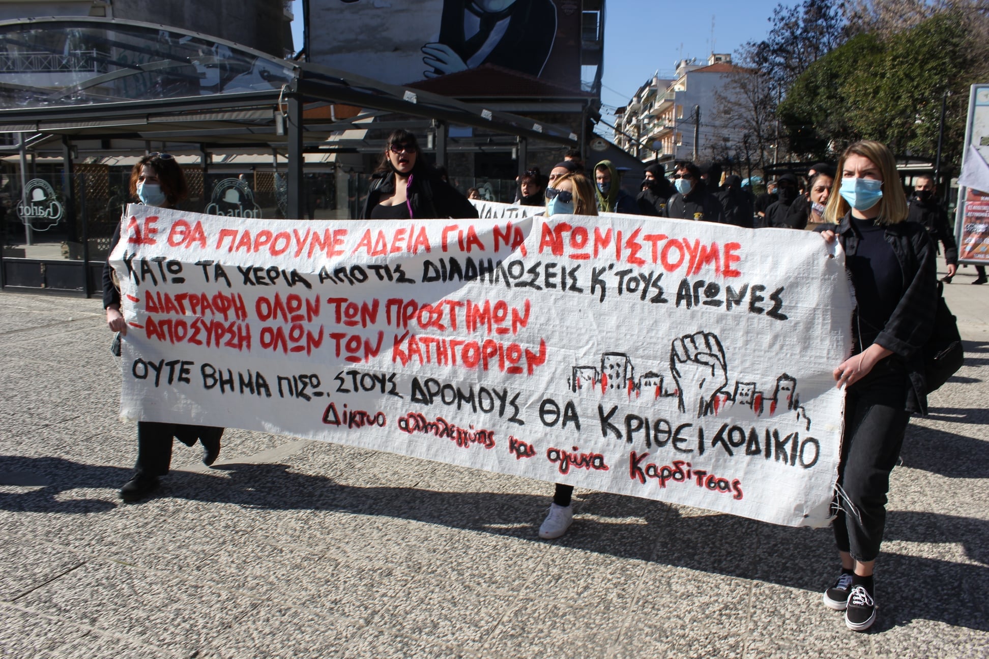 Απέναντι στην επιμονή της κυβέρνησης για συνέχιση της επίθεσης στα δικαιώματα των εργαζομένων και του λαού, στην υγεία, στην παιδεία, στην εργασία στην ελευθερία, εκμεταλλευόμενη την πανδημία, συνεχίζουμε με αποφασιστικότητα να υπερασπίζουμε τα δημοκρατικά δικαιώματα, το δικαίωμα σε κινητοποιήσεις κόντρα στην πολιτική περιστολής των ελευθεριών του λαού, να παλεύουμε για την παύση των διώξεων, την διαγραφή των προστίμων και την κατάργηση του αντιδημοκρατικού νόμου για την απαγόρευση των διαδηλώσεων.
